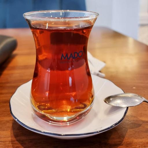 Mado doňdurma, konditer önümleri we ýörite ertirlik menýusy bilen meşhurdyr. Dünýädäki ähli Mado şahamçalary ýaly, kafeniň Aşgabat bölümi ingredientleriň tagamyny we naharlaryň hilini gorap saklamak üçin ähli önümleri Türkiýeden import edýär. Kafeniň işgärleri Türkiýede ýörite tälim aldylar.